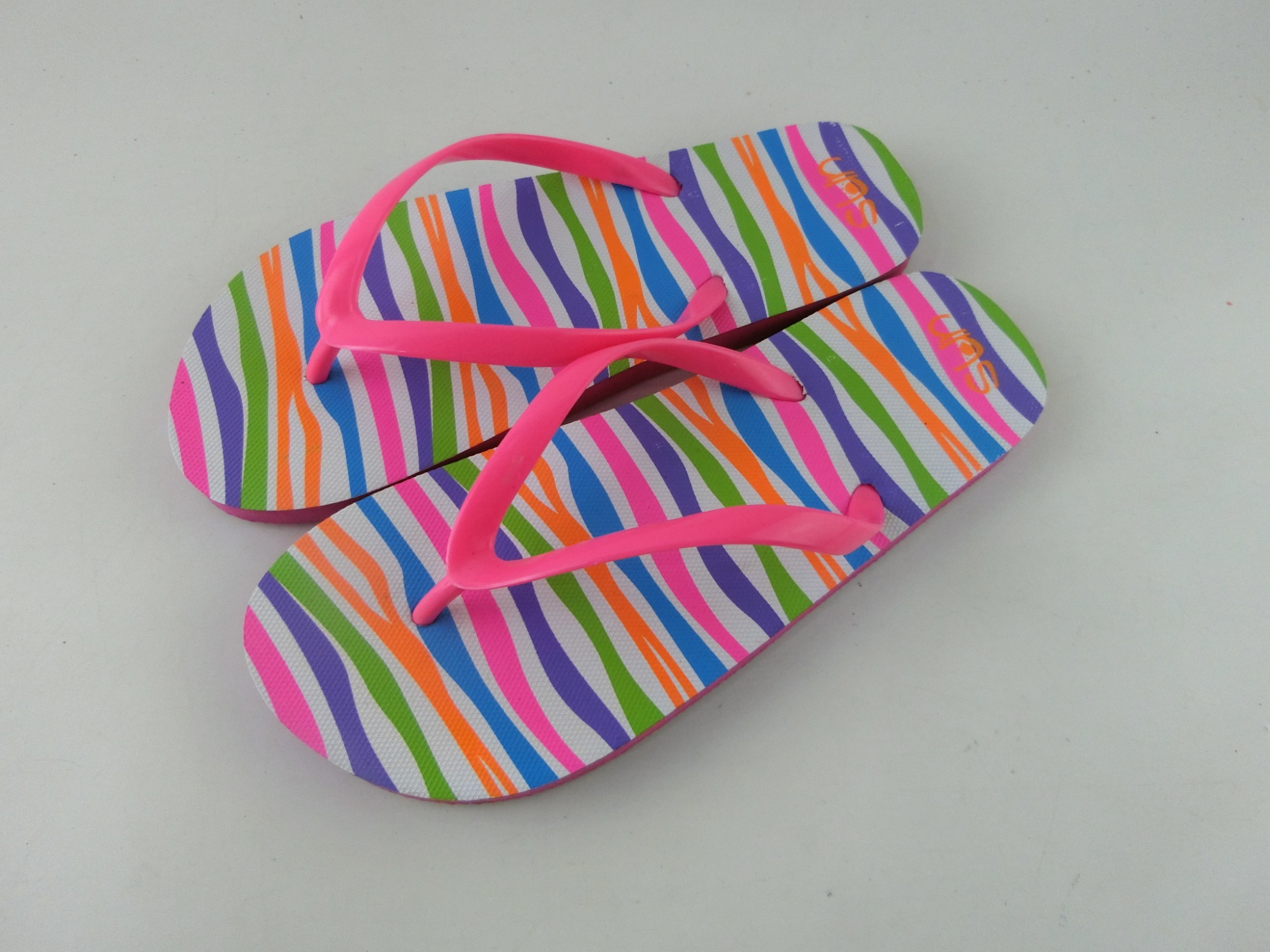 new design cheap price promotion sales printing pvc straps flip flops for girls